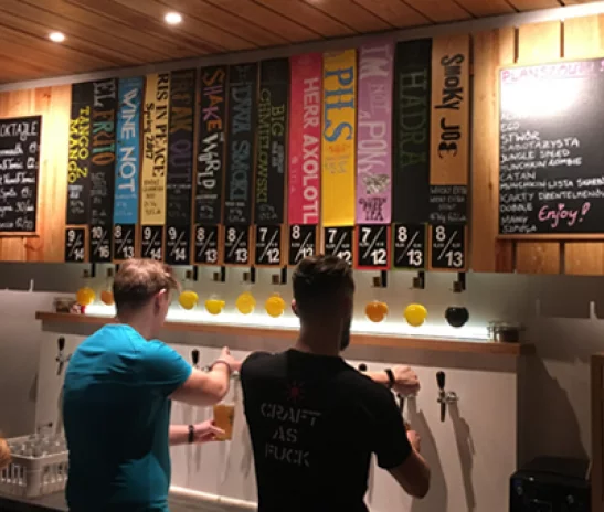 Nie tylko oczy znajdą uciechę w AleBrowarze. Kubki smakowe również! Na Włodkowica udostępnionych jest aż 13 nalewaków, z których spróbować można wyrobów tego browaru. Niekiedy miejsce na barze udostępniane jest też innym, zaprzyjaźnionym rzemieślnikom.