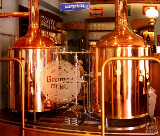 Browar Miejski podzielony jest na 3 pomieszczenia, sale dla gości są na parterze i piętrze, a najmniejsze wnętrze zostało zaprojektowane tak, by osoby się w nim znajdujące popijając piwo i kosztując świetnych, tradycyjnych potraw mogły zobaczyć prace piwowara Romana Mihułowicza. Lśniące miedzią kadzie aż zapraszają do zapoznania się z całym procesem produkcji, który można śledzić na schemacie instalacji. Piwowar czasami pozwala zajrzeć do kadzi, poczuć aromat słodu czy chmielu, z którego warzone jest piwo.