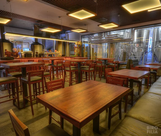W przestronnym wnętrzu pubu dominuje nowoczesny styl loftowy z elementami rodem ze średniowiecza. Wygodne stoły gwarantują 75 miejsc siedzących, jest to więc idealne miejsce do spotkań towarzyskich w większym gronie. Sercem sali jest bar, za którym można podejrzeć piwowarów przy pracy. Kocioł zacierno-warzelny i kadź filtracyjna lśnią stalą i stanowią ważny element wystroju wnętrza. Pozostałe elementy browaru i dalszy proces produkcji można podziwiać poprzez przeszkloną ścianę.
