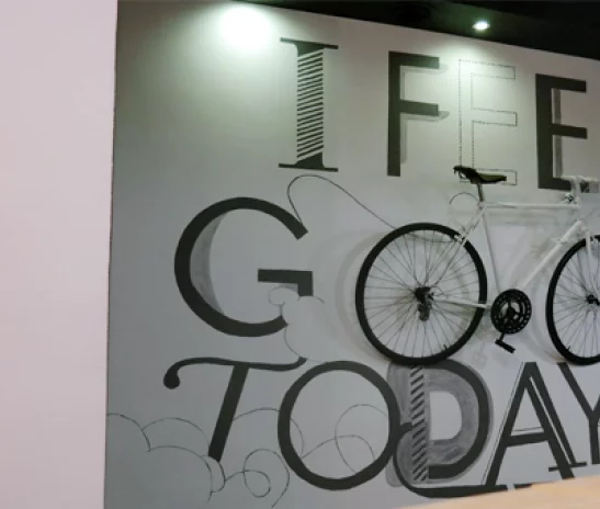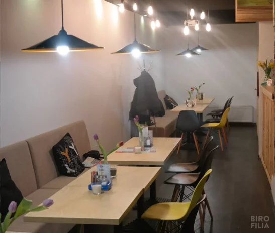 Wnętrze piwnicy urządzone jest minimalistyczne, głównym punktem przyciągającym wzrok jest grafika z napisem „I feel good today” z zawieszonym rowerem pomalowanym na biało. W pomieszczeniach dominują jasne kolory, gdzieniegdzie biel ścian przełamana jest ekspozycją oryginalnej cegły. W piwnicy można usiąść przy szerokich stolikach, na wygodnych krzesłach lub kanapach. Dobrze jest zająć sobie komfortowe miejsca, jeżeli chce się obejrzeć wydarzenie sportowe lub muzyczne transmitowane na dużym telewizorze.