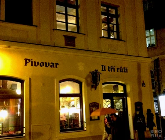 U Tří růží to minibrowar połączony z restauracją. Znajduje się na ulicy Husova, w pobliżu słynnego mostu Karola i praskiego rynku. W zasadzie już w chwili przekroczenia progu tego przybytku można poczuć bardzo oryginalną atmosferę. Na ścianach znajdują się malowidła dwóch artystów: Jirija Bernarda i Pawła Jakla. Przedstawiają historię piwowarstwa w Czechach oraz opowiadają o dziejach samego browaru U Tří růží. Czekając na zamówienie można się w przyjemny sposób dokształcić.
