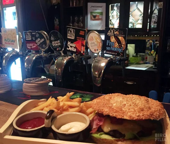 Bar wyposażony jest w 14 nalewaków, zawsze na kranach znajduje się parę firmowych piw oraz kilka trunków z polskich browarów. Mówiąc krótko jest z czego wybierać, a miłośnicy kraftów z pewnością znajdą coś dla siebie. Gdy nie są do końca przekonani o swoim wyborze zawsze mogą poprosić barmana o pomoc lub odrobinę trunku na spróbowanie. Pomocna i kompetentna obsługa, po wysłuchaniu preferencji gości doradzi i z pasją opowie o aktualnie dostępnych piwach. Częste premiery (m. in. Pinta miesiąca) sprawiają, że warto tu przyjść i skosztować nowości. Można tutaj także zjeść typowe pubowe dania i przegryzki do piwa. Świeże jedzenie robione jest na miejscu, a domowe burgery, panini i przystawki mogą pozytywnie zaskoczyć niejednego smakosza.