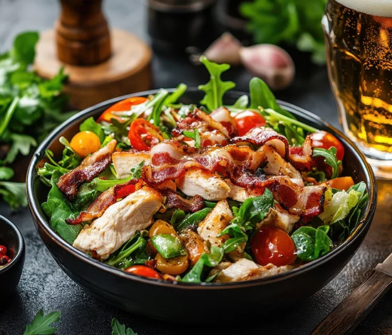 Połączenie piwa z potrawą w taki sposób, aby tworzyły harmonijną całość, to wyzwanie wymagające wyobraźni. Trzeba przewidzieć, jak smaki będą się uzupełniać, by wzajemnie się podkreślały, a nie zagłuszały. Delikatny i lekki smak piwa Żywiec Białe 0,0% doskonale komponuje się z drobiem, dlatego nasz wybór padł na klasyczną sałatkę Cezar. To proste, lecz wykwintne danie łączy różnorodność smaków w spójną całość, a wybrane przez nas piwo tylko potęguje te doznania. Żaden ze smaków nie dominuje – łagodne nuty piwa pszenicznego doskonale współgrają z delikatnością sałaty, mięsa i dojrzewającego sera.